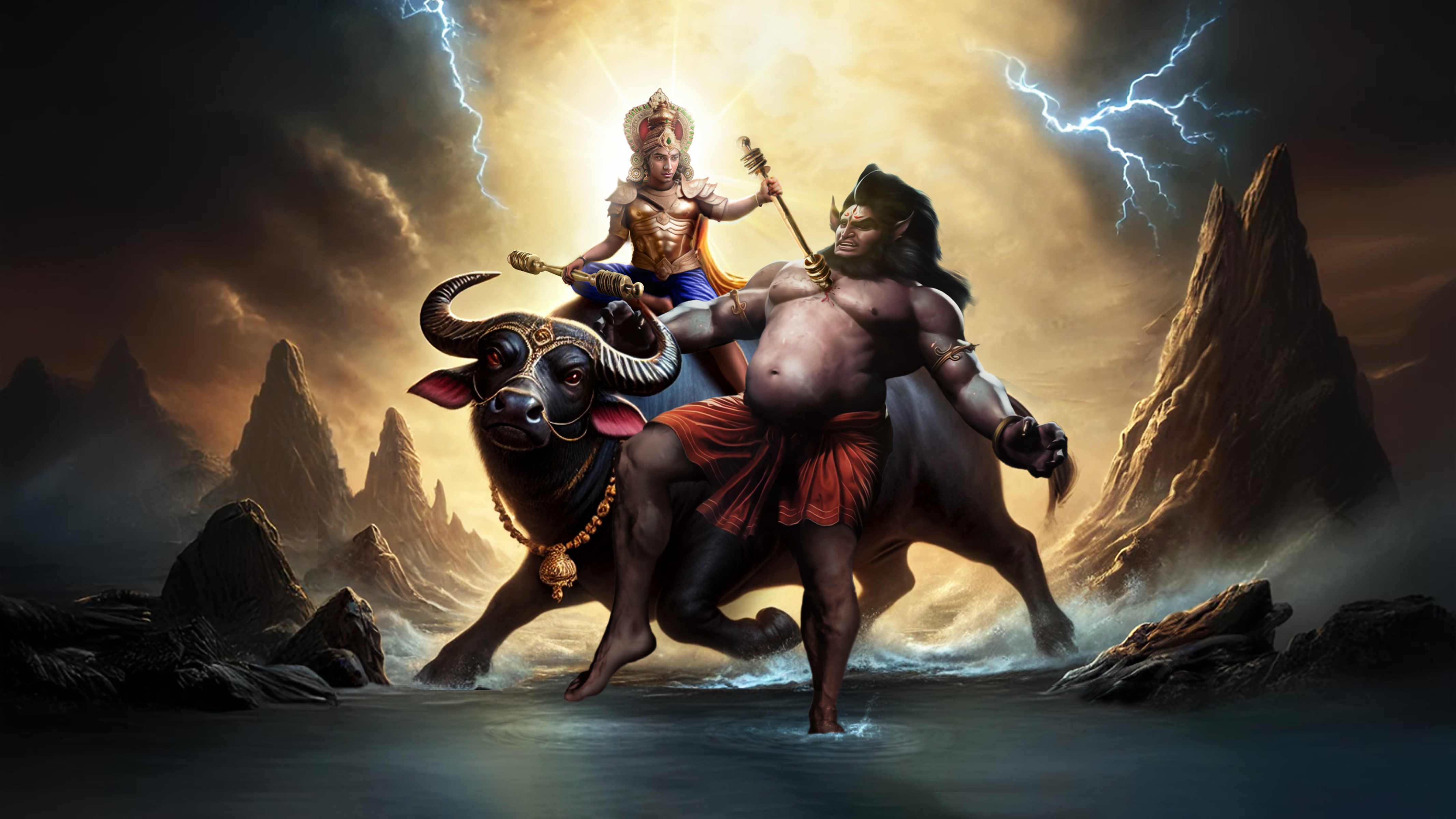 All-wise Saghatavar, a famous sage, lived by himself in a hermitage in the lovely woodland next to the Gomati river. He was devastated to see that his kid Viswakethu had all the negative traits. The sage expelled his son from the hermitage because of the transgressions his son had made. Another section of the world was experiencing a tragic drama at the same time. Keyoori, the sole child of Mahishasura clan member Vikalasuran, was strolling around the garden picking flowers when she met a handsome young man and fell in love with him. Without anybody else knowing, the Princess married the young guy, not knowing that he was a Gandharva. However, Vikalasuran quickly learned of Keyoori and the Gandharva's connection and, in a fit of rage, killed the Gandharva. Keyoori, who had brought shame upon the Asura clan, was restrained and abandoned in the woods. In the jungle, Viswakethu—who had been banished from the hermitage—and Keyoori—who had been expelled from the palace met. They lived happily in the forest. Keyoori was seen by the Vikalasuran soldiers at that very moment. When the soldiers informed Vikalasuran of this, he gave them the order to locate Keyoori and bring her before him. Then Vikalasuran imprisoned her in a subterranean dungeon. Sukracharya had a transcendental vision after learning of the incidents, which revealed how Keyoori's unborn child would be essential to the final annihilation of the Asuras. He gave Vikalasuran the order to leave Keyoori in the woods. Keyoori, who was once more abandoned in the wilderness, eventually found a hermitage and begged for some drinking water after being exhausted from hunger and thirst. It was Saghatavar's hermitage, who was Viswakethu's father. In accordance with the custom of receiving guests, the hermitage's residents offered her a warm welcome and food. When Saghatavar arrived at the hermitage, he noticed that Keyoori was expecting a kid and knew that the child would kill all the sages. Thus, Saghatavar gave the other sages the order to carry out an homam (the giving of sacred objects in a fire of sacrifice while reciting mantras) in order to exterminate Keyoori. When the sages began the homam, an evil vision emerged from the sacrificial basin's dark smoke. The apparition was asked by the sages to consume Keyoori. However, it declined to consume Keyoori, who was pregnant. The apparition then sent a black beetle into Keyoori's womb using its left eye to make one. Keyoori gave birth to a boy very immediately. Viswakethu arrived at the scene at that moment, but Keyoori had already been devoured by the apparition. The arrows of Vikalasuran's warriors also killed Viswakathu. A tribal hunter who had come to collect wild honey from the jungle came across the abandoned youngster. He observed that the boy's right palm was tightly clasped and that blood was dripping from it.When the hunter opened the tiny palm, he saw a strange-looking beetle (Bhrumgam) lying dead within. The hunter removed the insect, but the palm mark persisted. The child was given the name Bhrumgan because of the presence of the bhrumgam mark on his hand. The boy's parents started coming to visit him as ghosts as he grew up in the hunter's home. Even when he was young, a burning desire to destroy both the clans of the Sages and the Asuras became strong in his head as he came to understand that they were the ones who had made him an orphan. Because of this, Bhrumgan did penance in order to appease Brahma.